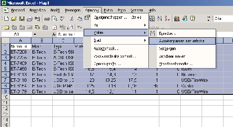 Bij het kopieren naar Excel heeft de breedte van de kolom in de artikellijst geen invloed.