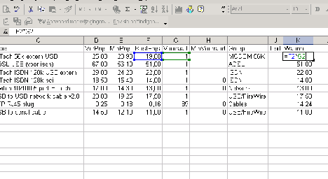 Voeg nu eventueel een kolom 'K' met '=F*G' toe om de waarde per artikel te bepalen en een 'Som(K)' om de totale waarde te bepalen.