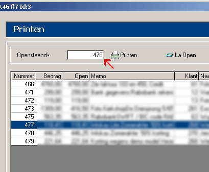 In deze lijst staan nu alleen de openstaande fakturen. Type het nummer van een niet openstaande factuur en toets vervolgens Shift + F12 om een betaling op een niet openstaande factuur te forceren.