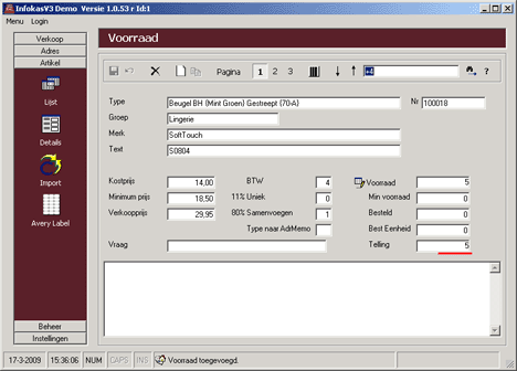 Om een voorraadtelling met barcode scanner te kunnen doen moeten de (meeste) artikelen van een barcode zijn voorzien.