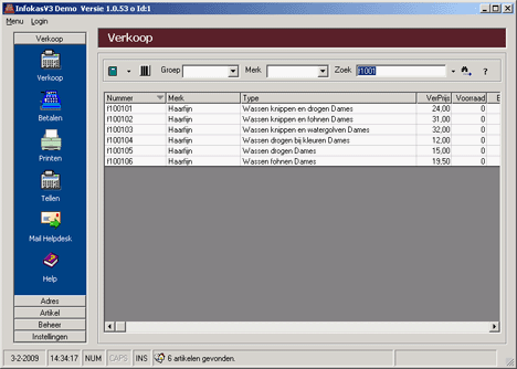 Bekijk de artikelen en probeer (in het verkoop scherm) de F1 t/m F8 toets voor de verschillende resultaten.