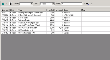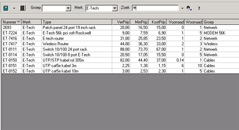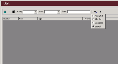 Kies een omzetgroep, merk of zoektekst en klik op zoeken. In de lijst worden nu alle artikelen getoond die voldoen aan de zoekopdracht en waarvan de voorraad kleiner is dan de minimum voorraad.