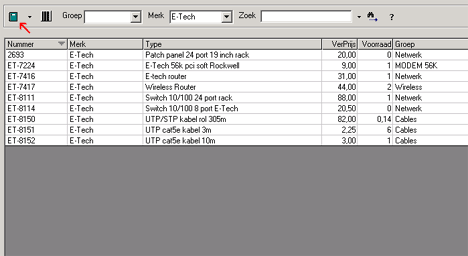 Ga terug naar de artikellijst en verklein de kolom breedte van 'nummer' 'merk' en 'type'.