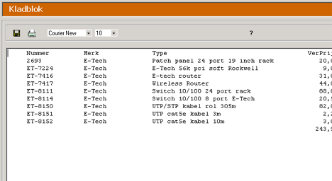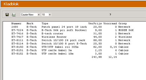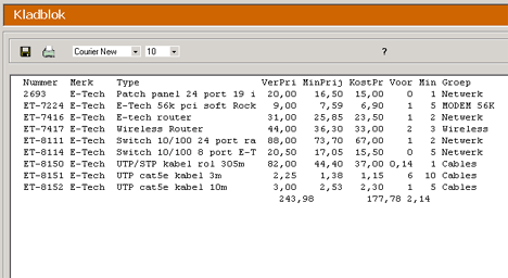 De kolommen 'minprijs' 'kostprijs' en 'minvoorraad' zijn nu ook zichtbaar. Pas de breedte van de kolommen aan en klik op 'artikellijst naar kladblok'.