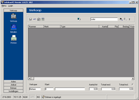 U kunt ook de sneltoets '#' gevolgd door uw code en 'Enter' gebruiken om in te loggen (alleen vanuit menu 'Verkoop'). Als de beheerder snel wil inloggen, toetst hij/zij dus: '#b1' en bevestigt met 'Enter'.
