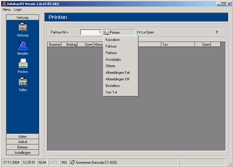 De kassabon wordt automatisch geprint. Vraagt de klant echter om een factuur, klik dan op 'Printen'.
