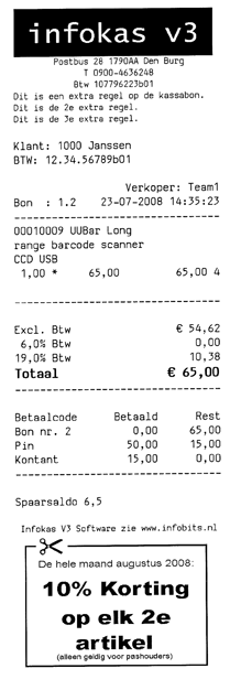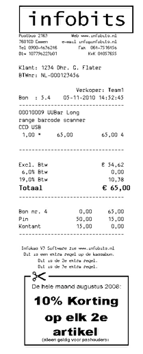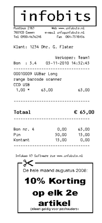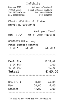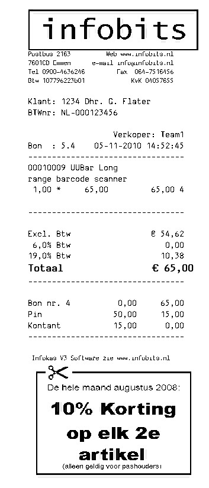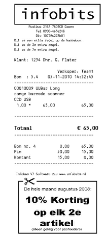 BonText is maximaal 100 characters lang en wordt automatisch over meerdere regels geprint.