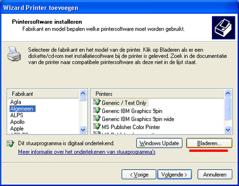 Klik op bladeren en ga naar de map [C:\Infobits\InfokasV3\TM200] of [USB:\Drivers\UUBar TM200]* en kies de 32 of 64 bit driver (Afhankelijk van uw Windows versie)