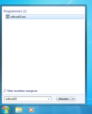 Klik op 'Start' - 'Uitvoeren' en start 'odbcad32'