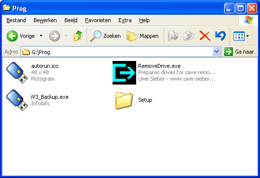 De backup wordt ingepakt in een .zip bestand met de naam: iV3Backup_jjmmddhhmmss.zip (jaar-maand-dag-uur-minuut-seconde) en opgeslagen op de USB drive in de map Backup.