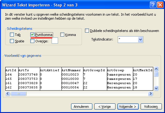 Omdat het nu een txt bestand is start de wizard tekst importeren van Excel: