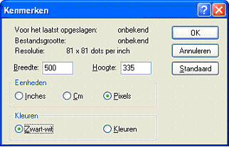 -Eenheden in Pixels (eerst pixels, daarna Breedte / Hoogte)