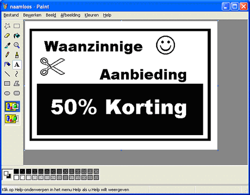 Wij hebben dit voorbeeld gemaakt op basis van Microsoft Paint maar u kunt natuurlijk ook een logo of coupon met een ander programma maken. Wij geven geen support op MS Paint.