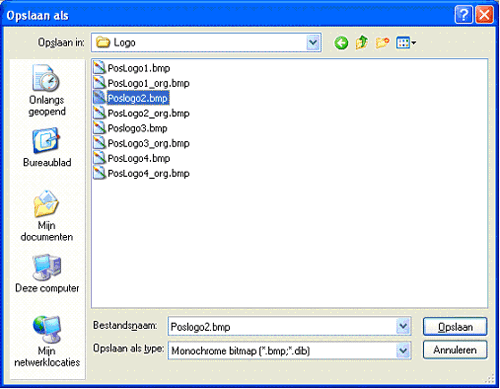 Sla de afbeelding op als [ Monochrome bitmap ] en geef als naam: