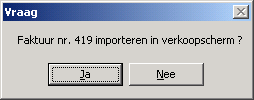 * Een oudere verkoop kan ingelezen worden door in het invoer veld (verkoopscherm) het commando '!importfactuur' (of sneltoets F2) te geven.