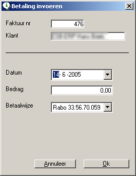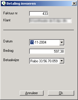 Door op een van de regels te dubbelklikken kunt u een betaling gaan invoeren: