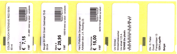 Door het afdrukken van een Ean8 barcode te forceren kan het label gevouwen op een hangetiket geplakt worden (prijs aan de voorkant, de barcode aan de achterkant).