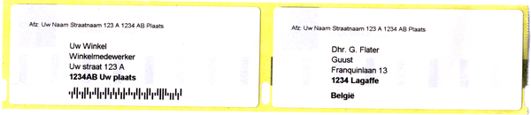 Alleen geschikt als adreslabel, boven het klant adres is er ruimte voor de afzender, als de klant een geldige postcode heeft dan wordt ook de TNT KIX code afgedrukt.