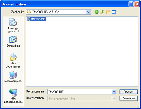 Klik op bladeren en ga naar de map [C:\Infobits\InfokasV3\TM200] of [USB:\Drivers\UUBar TM200]* en kies de 32 of 64 bit driver (Afhankelijk van uw Windows versie)