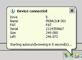 Steek de USB drive in de computer, onder in beeld verschijnt het scherm 'Device Connected: Starting autorun in 5 seconds'