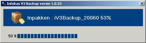 De backup wordt ingepakt in een .zip bestand met de naam: iV3Backup_jjmmddhhmmss.zip (jaar-maand-dag-uur-minuut-seconde) en opgeslagen op de USB drive in de map Backup.
