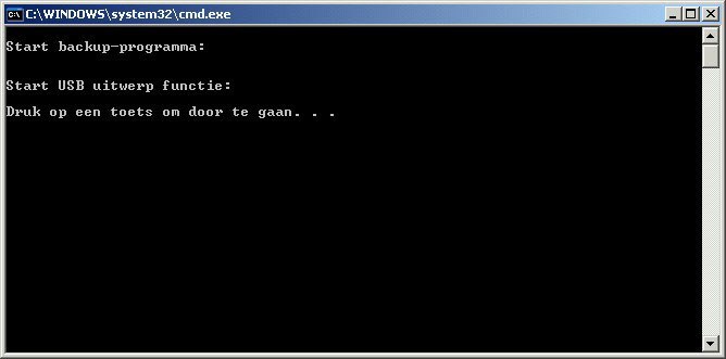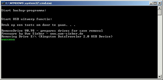 Druk om een toets om door te gaan met ontkoppelen (of sluit dit venster met de X als u de koppeling met de USB drive wilt houden).
