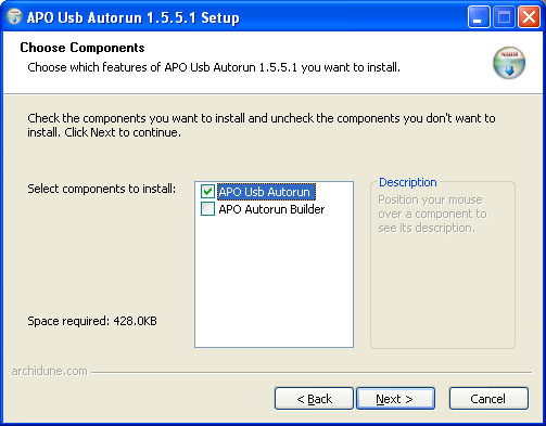 Selecteer APO USB Autorun (de Builder is niet nodig) en klik op Next